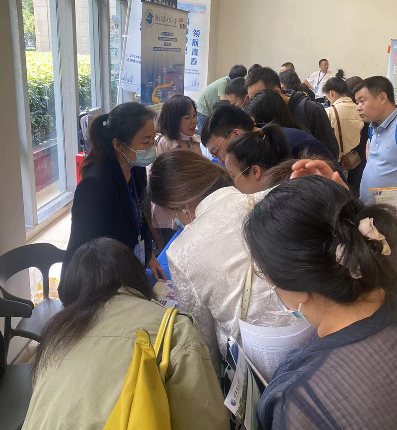 咨询会当天,我院招生宣传工作人员早早来到会场,精心布置展台,向参会的高三学子和家长宣传我校的办学特色、师资队伍、特色拔尖班型、中外合作办学项目、招生政策、录取情况、校园环境等方面,并就参会家长和考生的疑问给予详尽细致的解答,在考生家长面前展现出了良好的温暖、向上的南信大形象,得到了众多考生家长的认可和好评。咨询会后,招生宣传人员继续通过QQ招生咨询群等线上渠道继续和考生家长互动答疑,力争进一步夯实招生宣传的广度和深度。