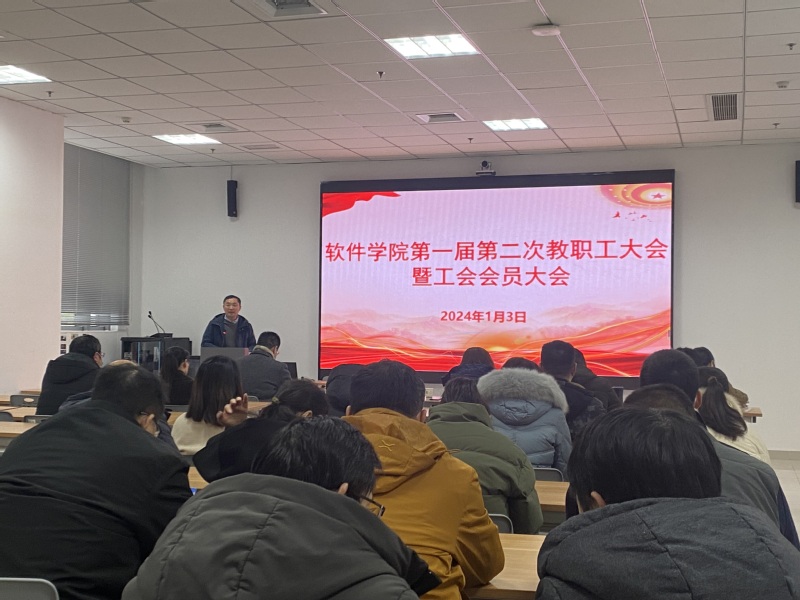 1月3日,软件学院第一届第二次教职工大会暨工会会员大会在临江楼A101顺利召开,学院全体教职员工参加了此次大会。会议由学院副书记(主持工作)巨传友主持。